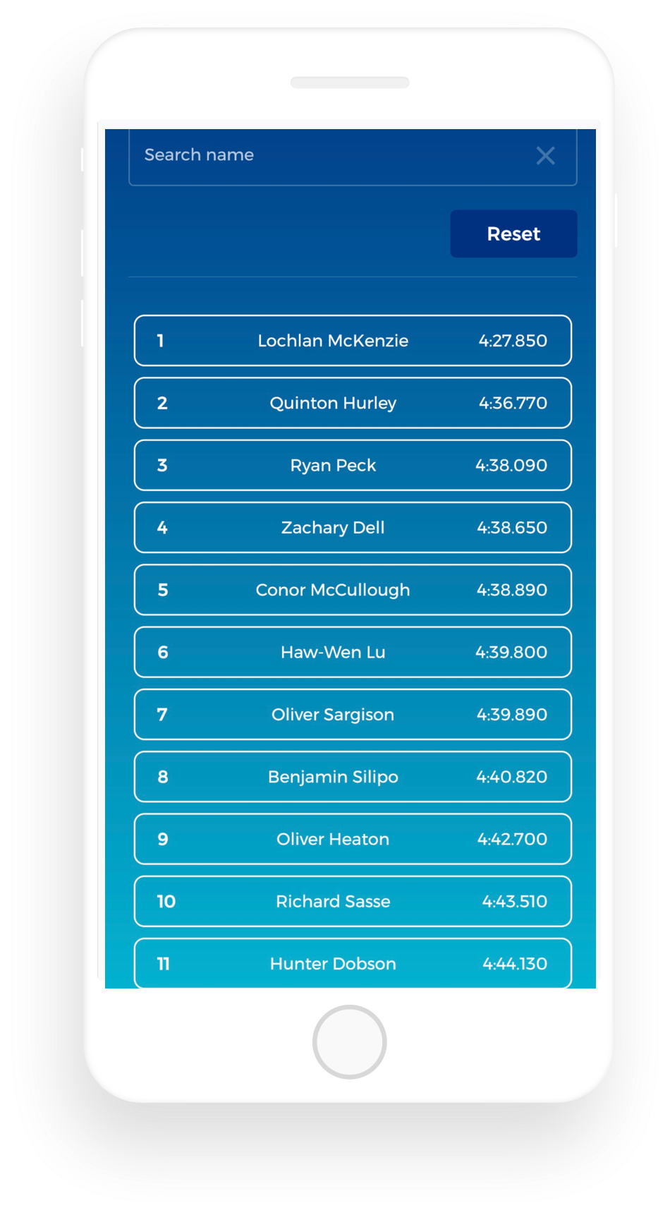 provide ranking based on their results from each meet, users can specify the time range, stroke, age, gender and distance to see how they are ranked amongst other competitive swimmers