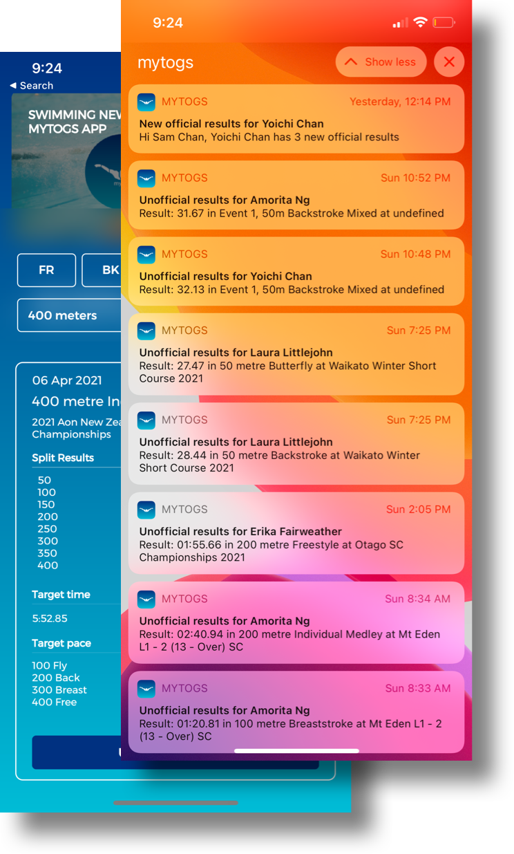 With a simple toggle to view personal best in each event includes short course and long course conversion.
